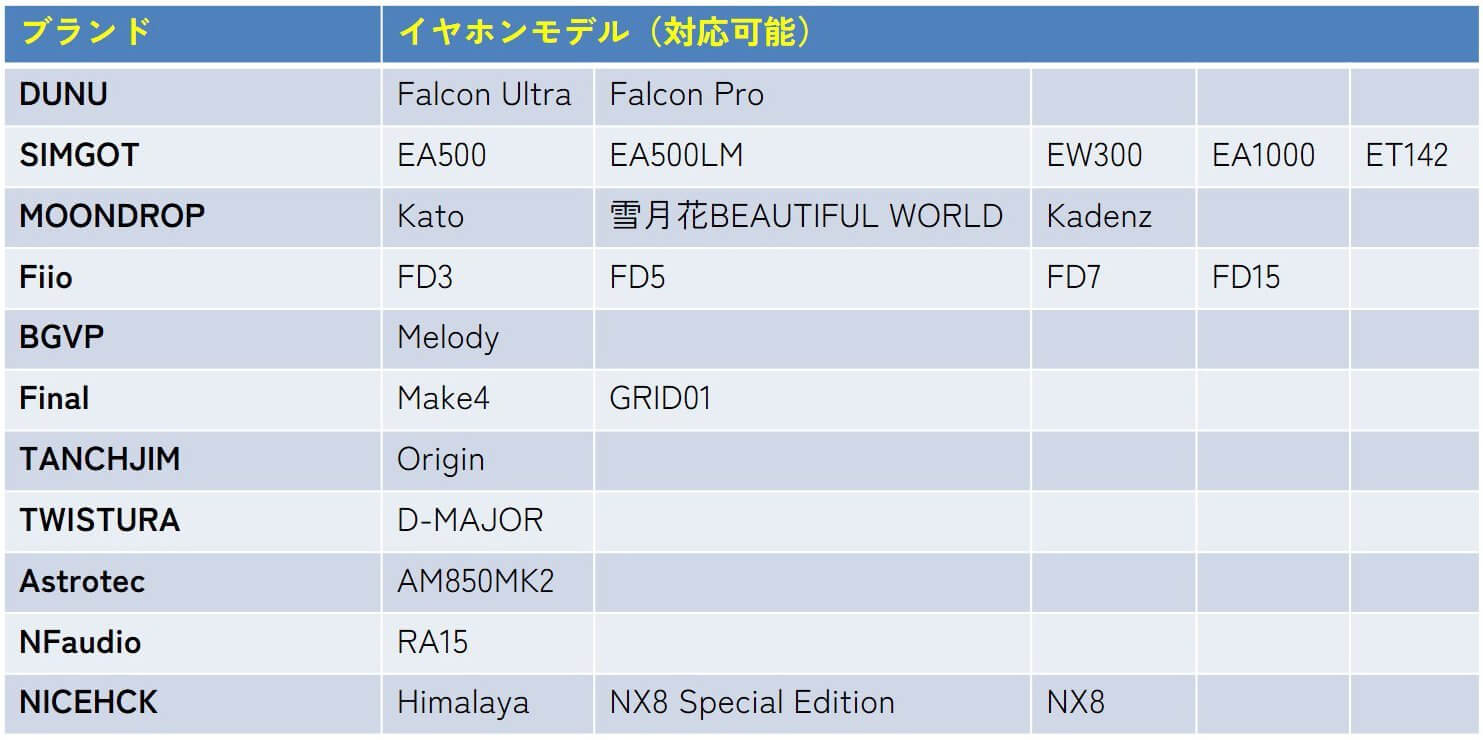 7月1日にNICEHCKから金属製調音ノズルが発売されています。適合モデルは以下の通り。NX7シリーズには適合しないそうです。チタン合金製とステンレス製の2種類がセットになっています。チタン合金ノズルは高域の耳障りさを軽減し低域の存在感を強化、ステンレス製は中高域を強化し低音の解像度を最適化するとのこと。