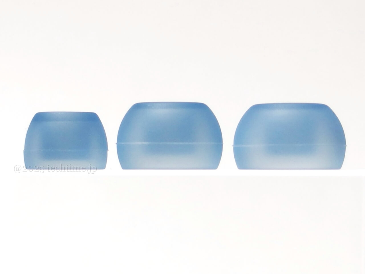 お椀型青シリコンイヤーピースは低音を少し底上げします。低音不足を感じる場合はこちらの方が聴き心地が良くなることが多いはずです。