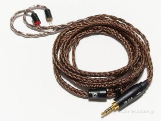 KBX4913(Amazon/楽天市場)は8芯4N銀線ケーブルです。本物の銀線だろうと思います。中華イヤホンセラーWTSUN Audio(Amazon/楽天市場)の専売品です。イヤホン本来の音域バランスをさほど変えないタイプです。細い銀線やニセ銀線(特厚銀メッキ)で弱りがちな超低域~中低域も銅線並みに出ます。高音のピークが極端に強まる部分もなく、全域で伸びやかです。2pinは非CIEM、mmcxは先割れタイプ、耳掛けチューブ付き。qdcタイプの極性(+-)の向きは不明です。